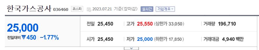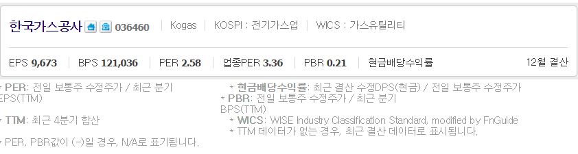 우선 한국가스공사(036460)의 정보부터 확인하시죠.