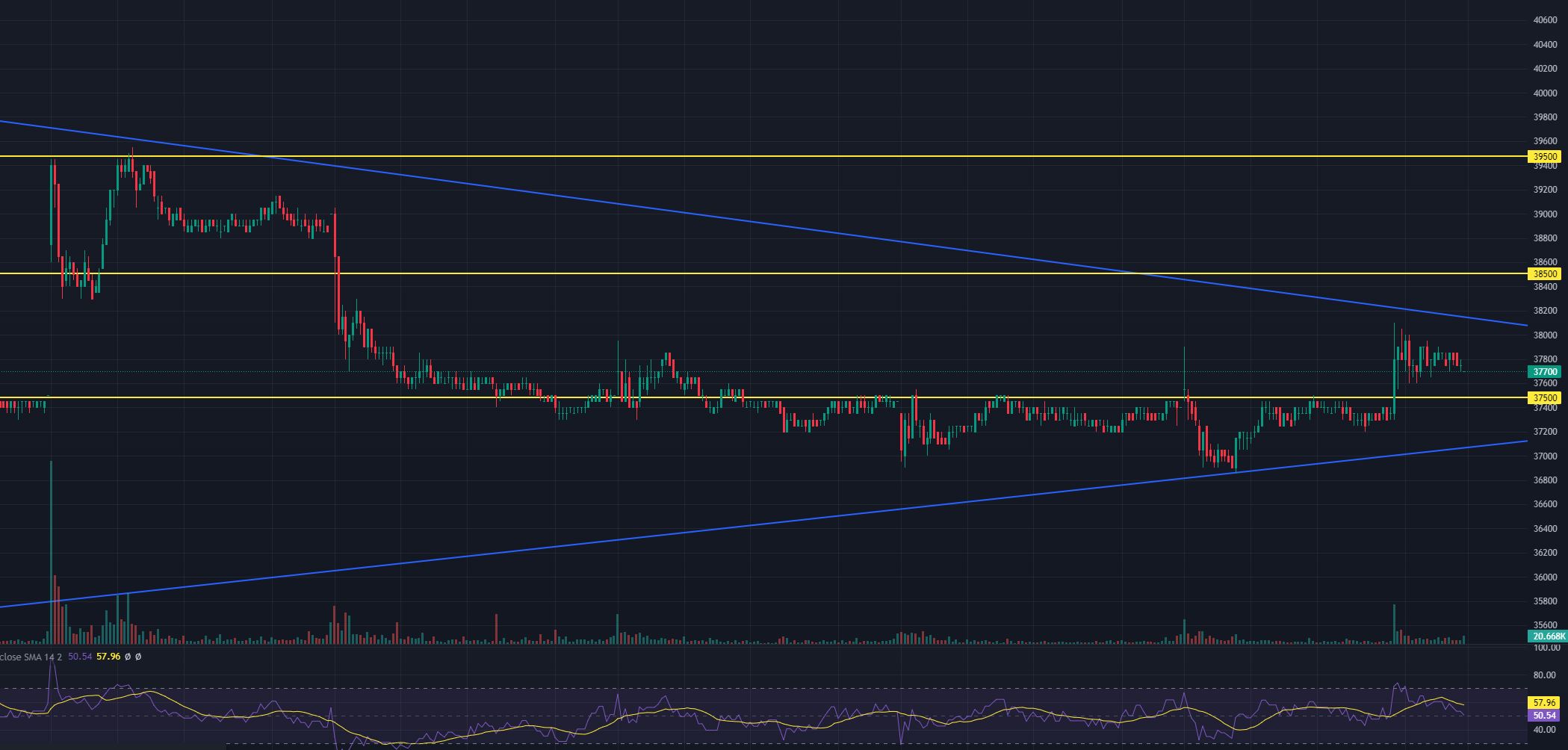 파란 지지선을 뚫고 올라가면 그 위의 파란 지지선까지도 바라볼 수 있다고 생각하고, 그걸 뚫지 못하고 추세선을 타고 내려간다면 어디까지 내려갈지 예상은 되지 않습니다.