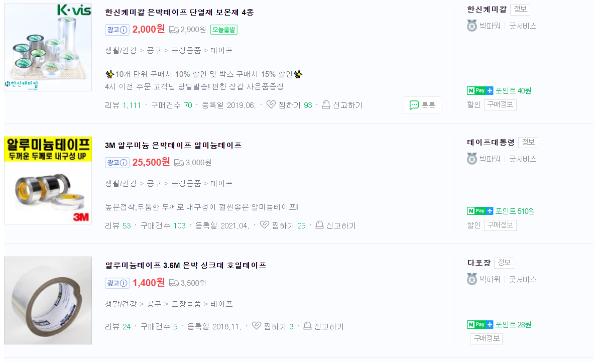 단열재는 은박 테이프와 함께 구매하세요!