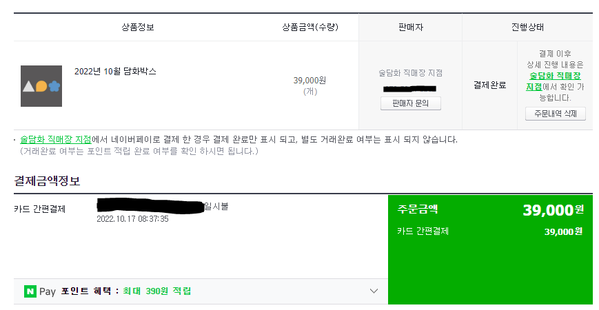 제가 구매한건 정기 구독인지라 가격이 조금 싼 것 같은데 위에 있는 42,000원짜리가 이번 달 품목으로 배송되어 왔네요.