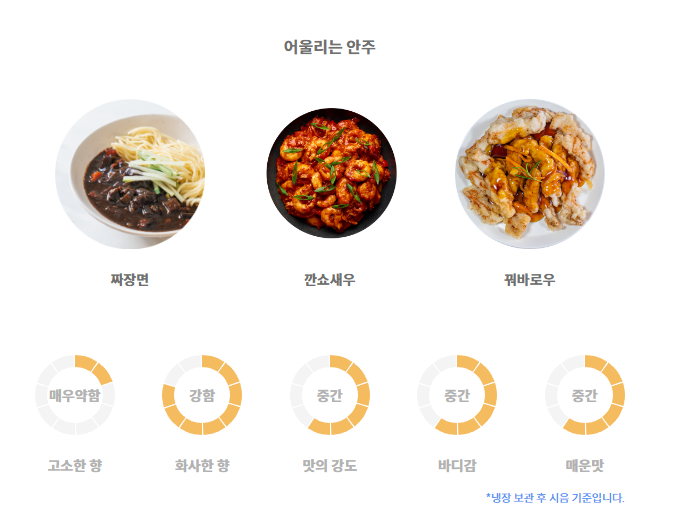사이트를 보더라도 꽤나 상세히 적혀있고 술의 맛 특징과 추천 안주까지도 잘 적혀있습니다.